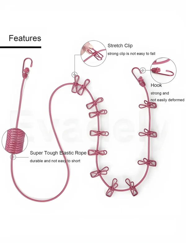 Each rope has 12 clips, so you can hang multiple garments without tangling.