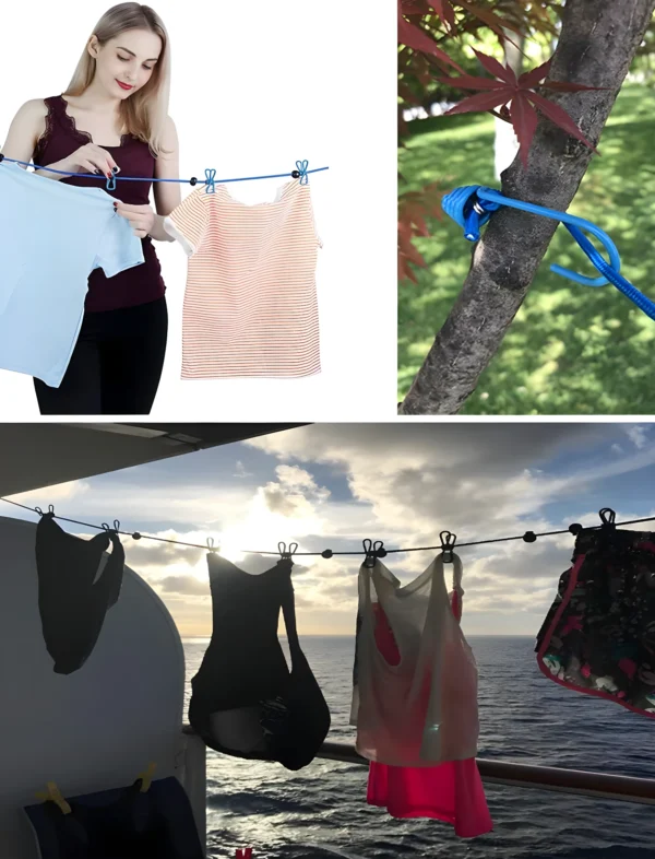 Whether you live in an apartment with limited space or simply need a convenient way to hang laundry while traveling, this clothes hanging rope is lightweight, portable, and designed for everyday use.